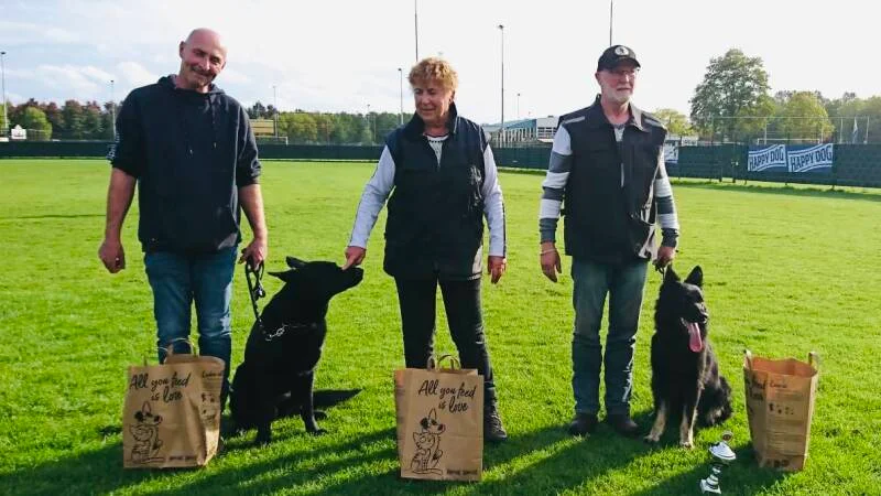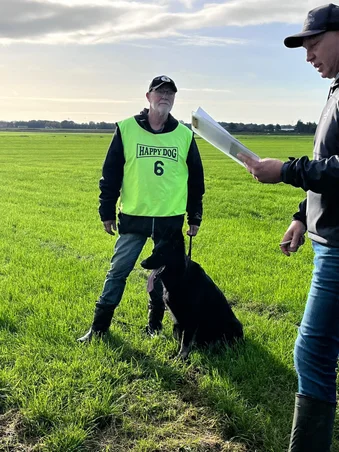 De dag begint met een zonnetje en een frisse wind, om precies 8.30 uur vertrekken we met 13 auto’s naar de speurvelden. De eerste sporen waren al uitgelopen en om 10 uur mocht Ruud beginnen met speuren. Ginny was vrolijk en Ruud liep er ontspannen bij, dit zorgt o.a. voor de mooie cijfers.